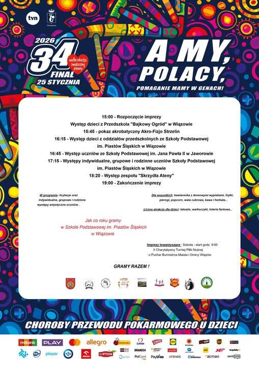 Nasi uczniowie również będą czynnie uczestniczyć w 34 Finale WOŚP 25 stycznia 2026 r. w Szkole Podstawowej im. Piastów Śląskich w Wiązowie.
