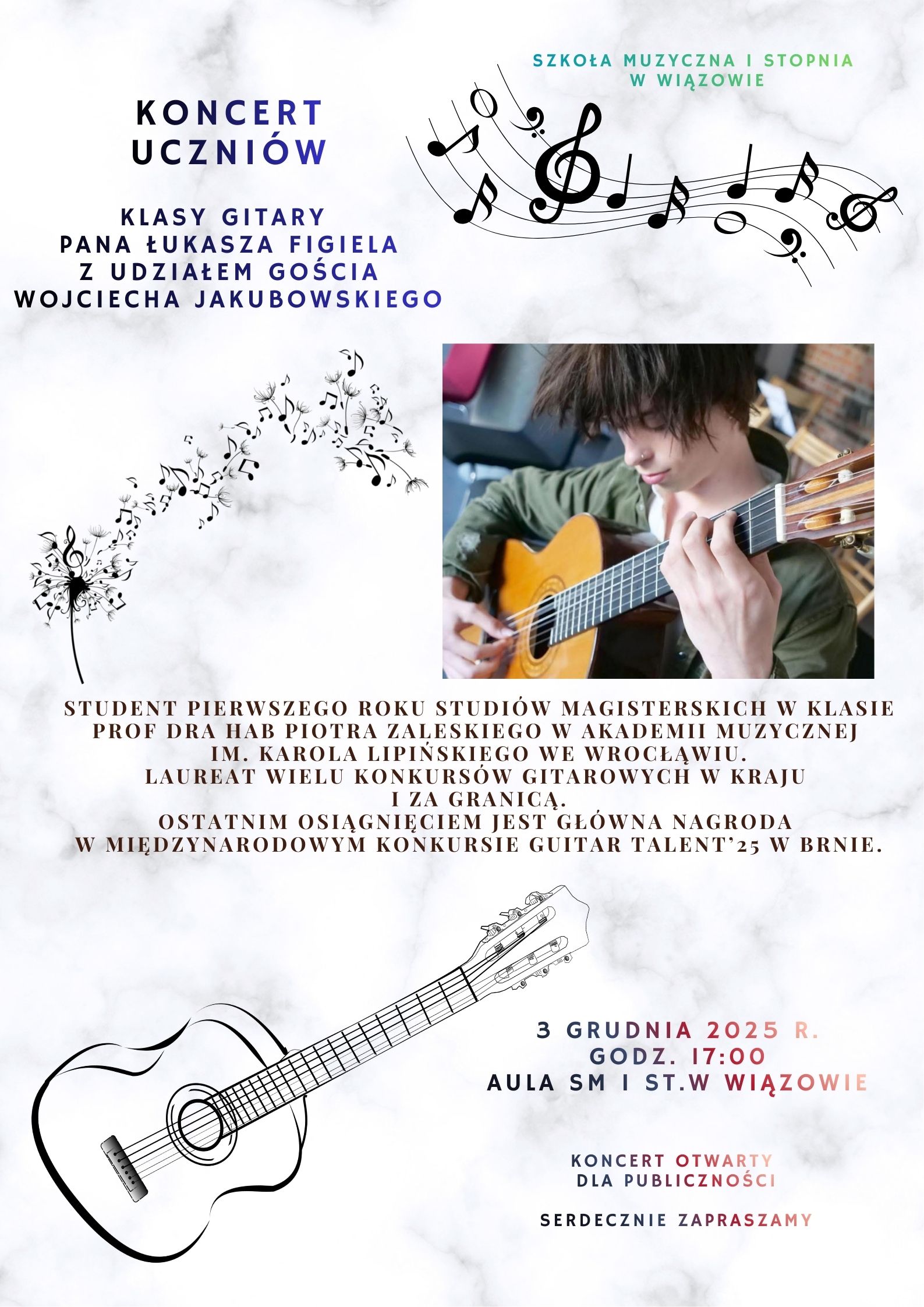Serdecznie zapraszamy na koncert naszych uczniów z udziałem znakomitego studenta.